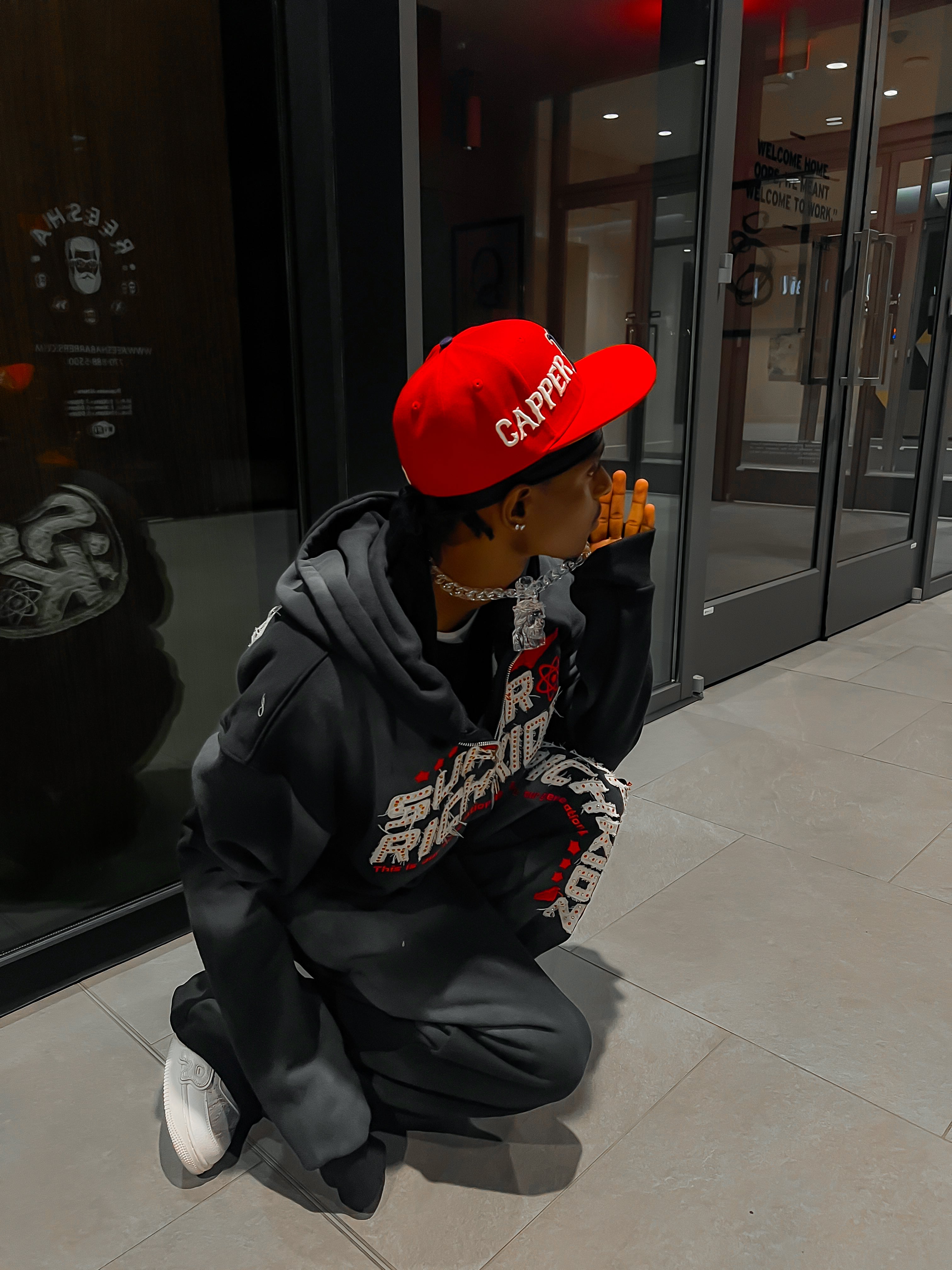 SUPERRICHKID V4 CROPPED BLACK HOODIE